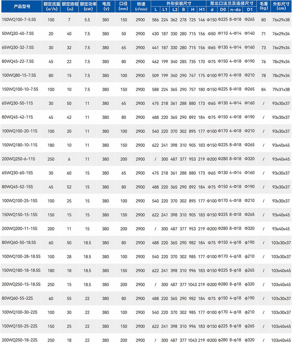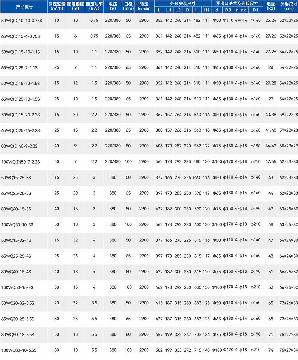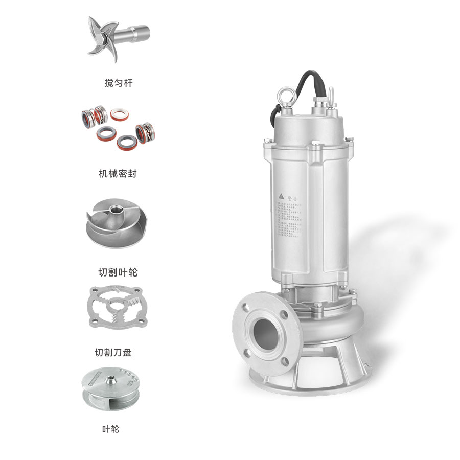 國(guó)標(biāo)法蘭WQ(D)-S全不銹鋼精密鑄造污水污物潛水電泵采用不銹鋼精密鑄造外殼,具有耐腐蝕、環(huán)保型、揚(yáng)程高、流量大等特點(diǎn)。