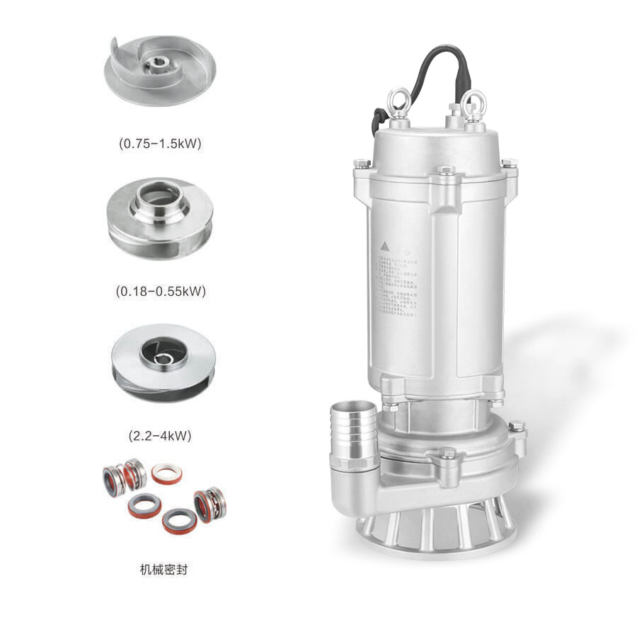 WQ(D)-S系列全不銹鋼精密鑄造污水污物潛水電泵采用獨特的單、雙流道式葉輪結構,大大提高了污物的通過能力。
