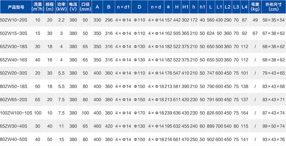 1、ZW-S自吸排污泵采用不銹鋼精密鑄造工藝成型,最大程度保證零部件的表面粗糙度,減低流道內(nèi)的水力損失,提高電泵效率;